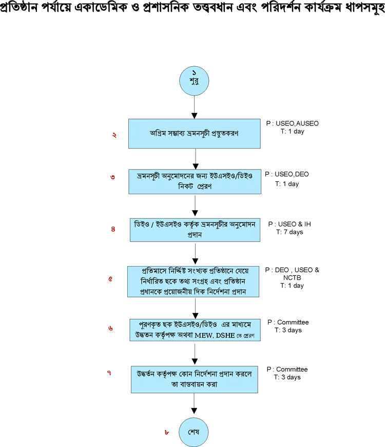 প্রতিষ্ঠান পর্যায়ে একাডেমিক প্রশাসনিক তত্ত্বাবধান এবং পরিদর্শন কার্যক্রম ধাপসমূহ